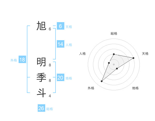 旭 明季斗さんの天格は6画の4点!
