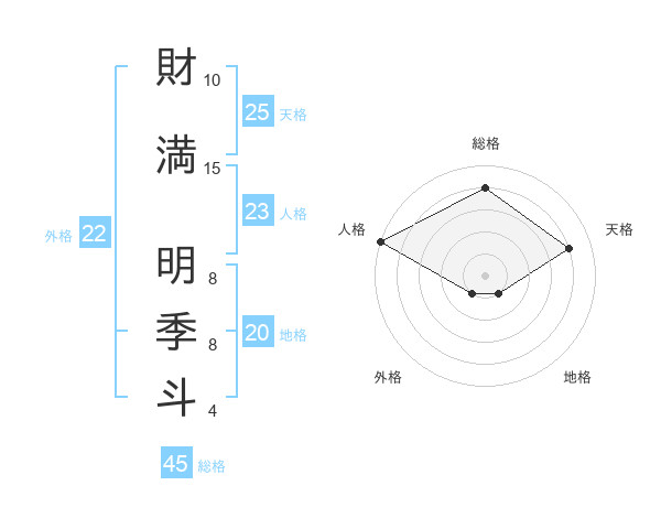 財満 明季斗さんを姓名の画数から五運を鑑定