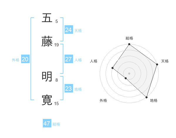 五藤 明寛さんの総格は47画の5点!