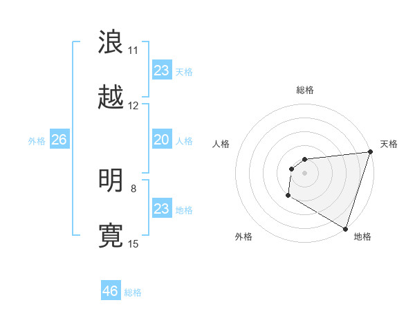 浪越 明寛さんの地格は23画の5点!