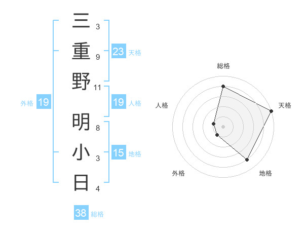 三重野 明小日さんを姓名の画数から五運を鑑定
