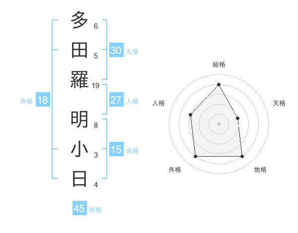 多田羅 明小日さんを姓名の画数から五運を鑑定