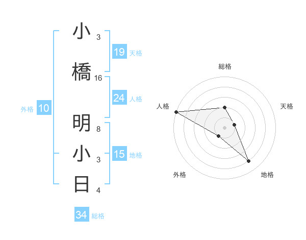 小橋 明小日さんを姓名の画数から五運を鑑定