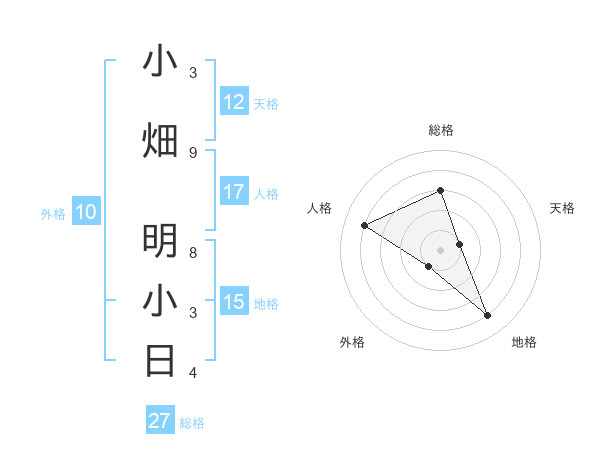 小畑 明小日さんを姓名の画数から五運を鑑定