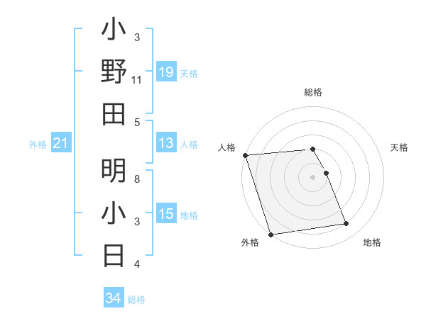 小野田 明小日さんを姓名の画数から五運を鑑定