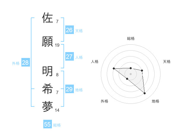 佐願 明希夢さんを姓名の画数から五運を鑑定