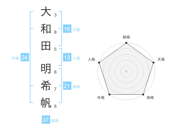 大和田 明希帆さんの総格は37画の5点!