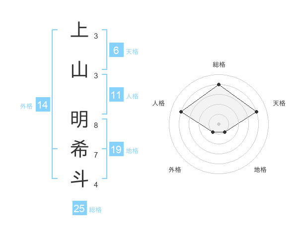 上山 明希斗さんを姓名の画数から五運を鑑定