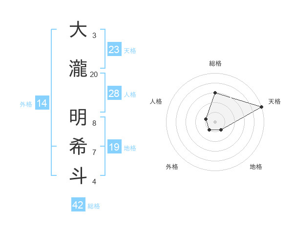 大瀧 明希斗さんの天格は23画の5点!
