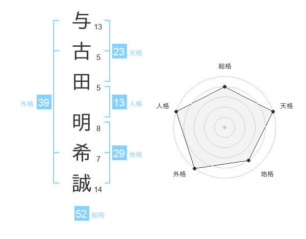 与古田 明希誠さんの外格は39画の5点!