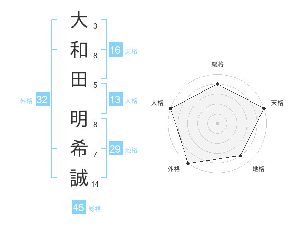 大和田 明希誠さんを姓名の画数から五運を鑑定