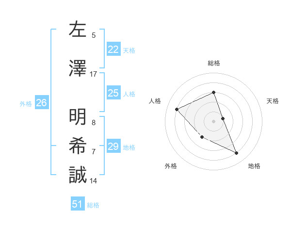 左澤 明希誠さんを姓名の画数から五運を鑑定