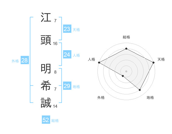 江頭 明希誠さんの総格は52画の4点!
