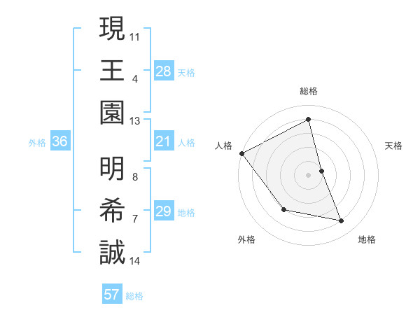 現王園 明希誠さんを姓名の画数から五運を鑑定