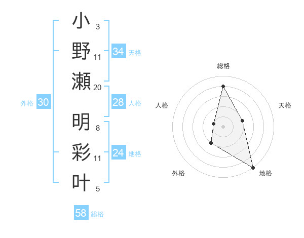 小野瀬 明彩叶さんを姓名の画数から五運を鑑定