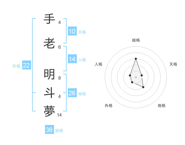 手老 明斗夢さんの外格は22画の1点!