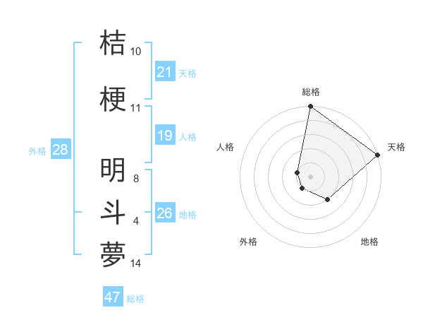 桔梗 明斗夢さんを姓名の画数から五運を鑑定