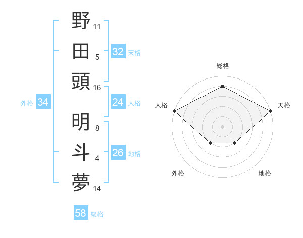 野田頭 明斗夢さんの天格は32画の5点!