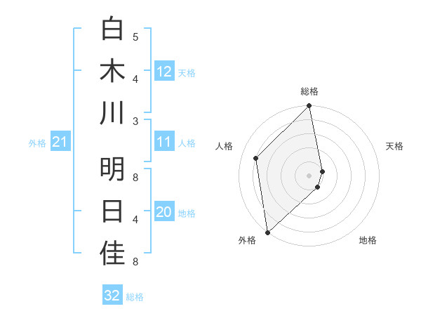 白木川 明日佳さんを姓名の画数から五運を鑑定