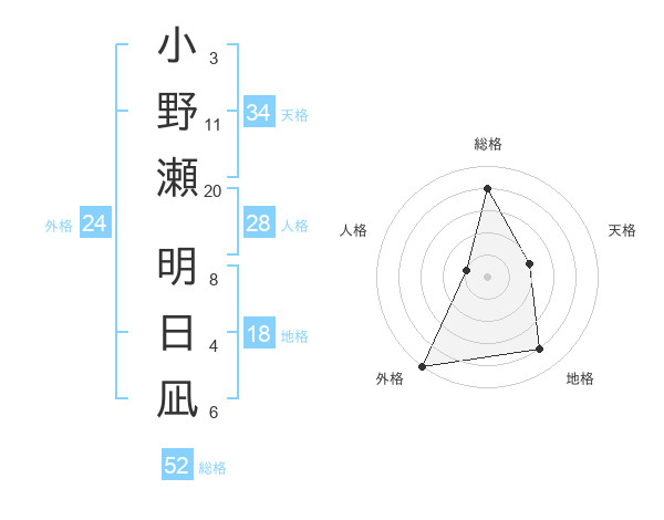 小野瀬 明日凪さんを姓名の画数から五運を鑑定