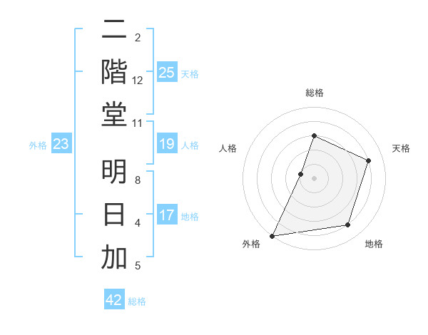 二階堂 明日加さんの天格は25画の4点!
