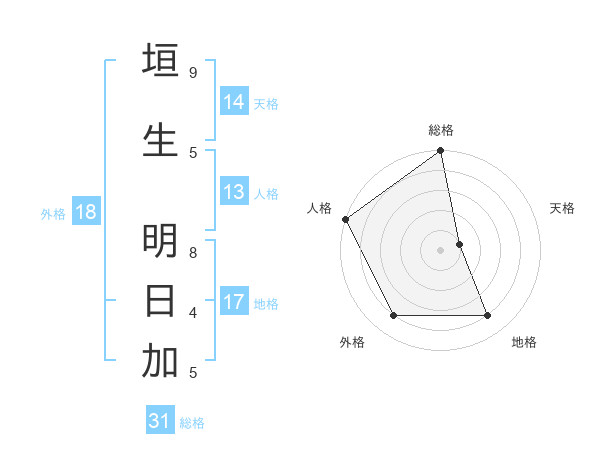 垣生 明日加さんを姓名の画数から五運を鑑定