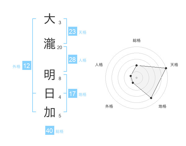 大瀧 明日加さんを姓名の画数から五運を鑑定