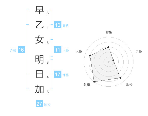 早乙女 明日加さんを姓名の画数から五運を鑑定