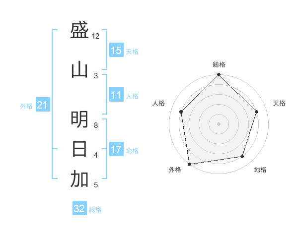 盛山 明日加さんを姓名の画数から五運を鑑定