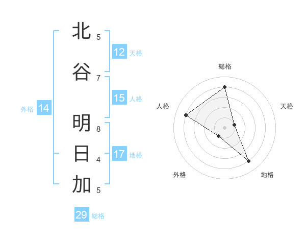 北谷 明日加さんを姓名の画数から五運を鑑定