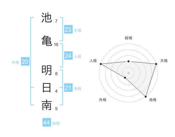 池亀 明日南さんの総格は44画の2点!
