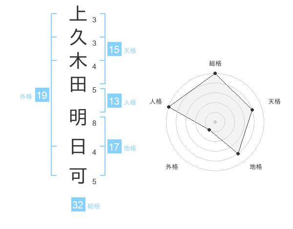 上久木田 明日可さんを姓名の画数から五運を鑑定