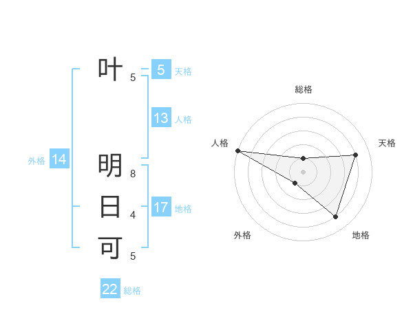 叶 明日可さんの天格は5画の4点!