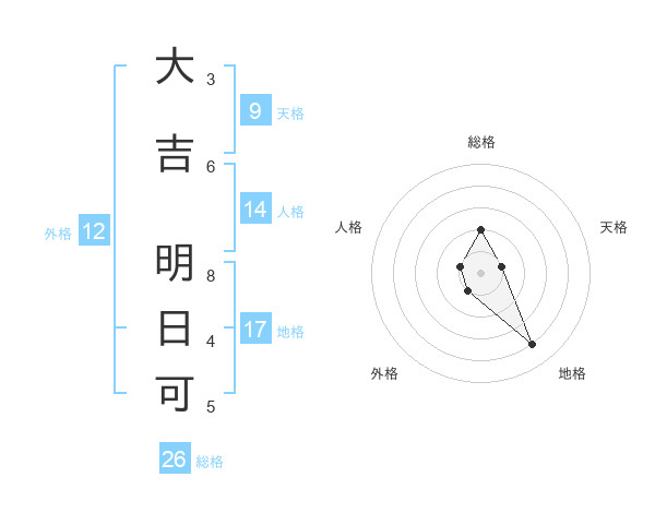 大吉 明日可さんを姓名の画数から五運を鑑定
