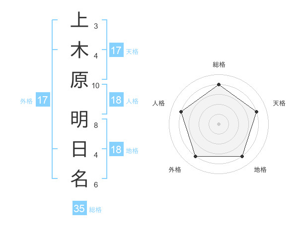 上木原 明日名さんの天格は17画の4点!