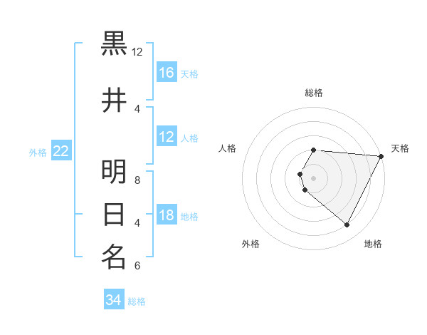 黒井 明日名さんを姓名の画数から五運を鑑定