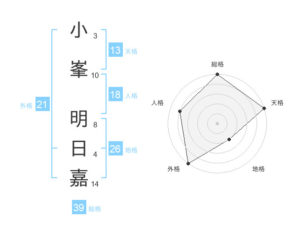 小峯 明日嘉さんを姓名の画数から五運を鑑定