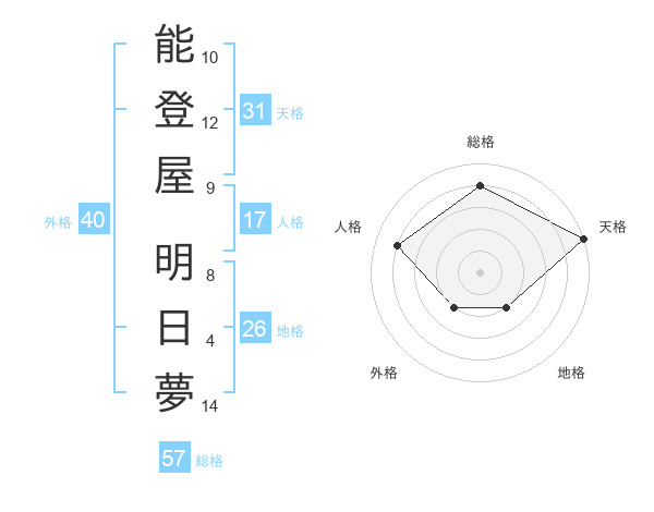 能登屋 明日夢さんの天格は31画の5点!