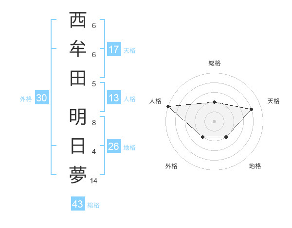 西牟田 明日夢さんを姓名の画数から五運を鑑定