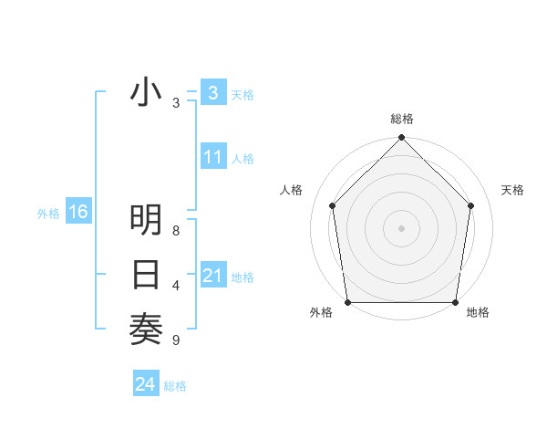 小 明日奏さんの外格は16画の5点!