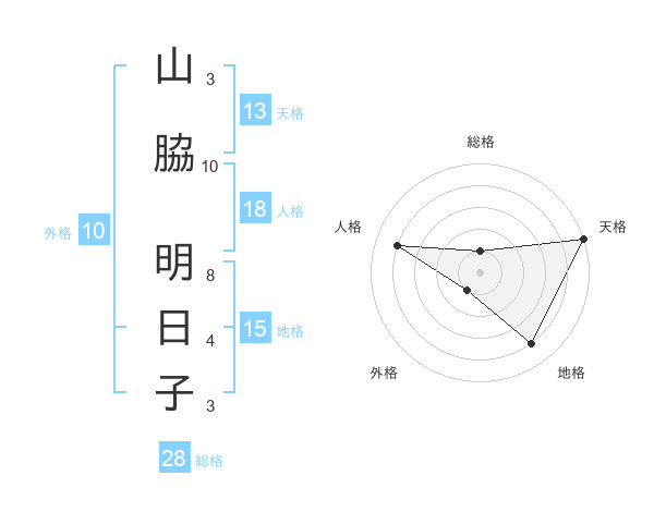 山脇 明日子さんの総格は28画の1点!