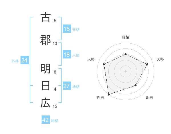 古郡 明日広さんを姓名の画数から五運を鑑定