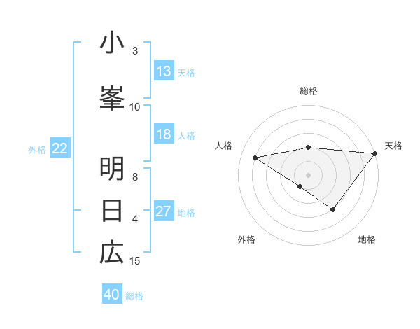 小峯 明日広さんを姓名の画数から五運を鑑定