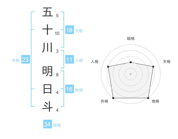 五十川 明日斗さんを姓名の画数から五運を鑑定