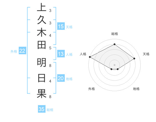 上久木田 明日果さんを姓名の画数から五運を鑑定