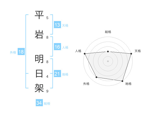 平岩 明日架さんを姓名の画数から五運を鑑定