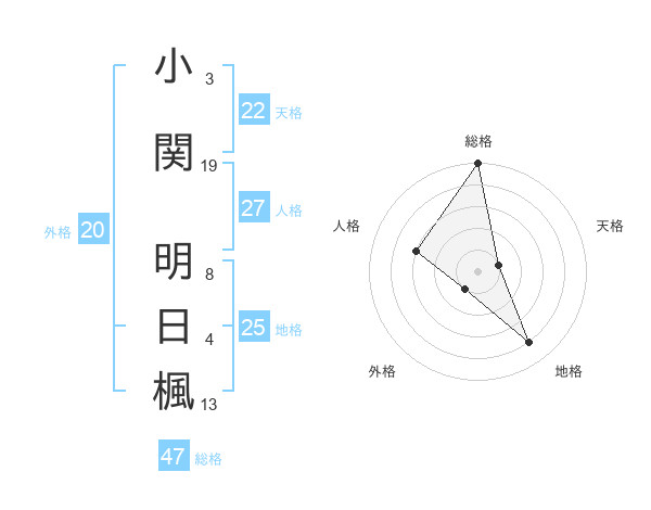 小関 明日楓さんを姓名の画数から五運を鑑定
