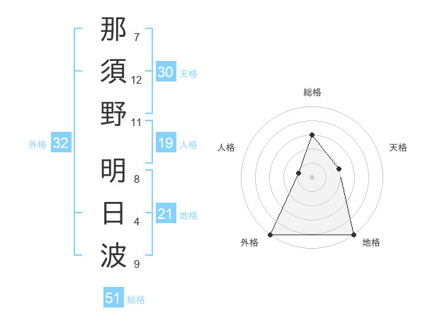 那須野 明日波さんを姓名の画数から五運を鑑定