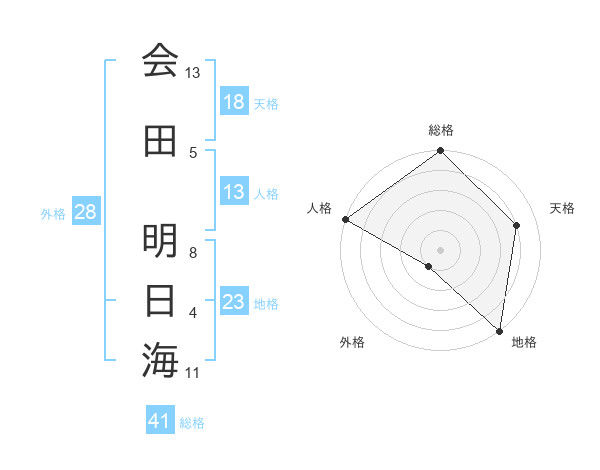会田 明日海さんの総格は41画の5点!