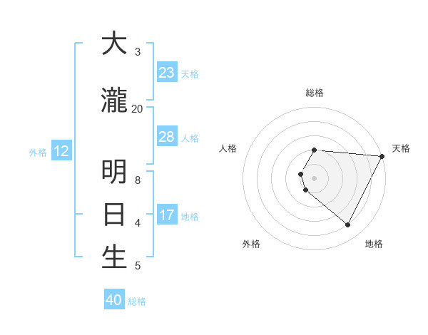 大瀧 明日生さんを姓名の画数から五運を鑑定